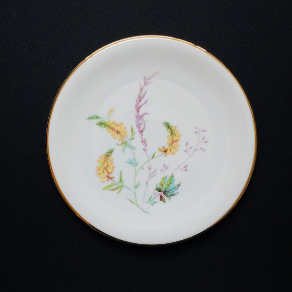 • G.E.B  - Fino prato em porcelana esmaltada decorada com delicadas flores ao centro. Borda lisa filetada à Ouro. Exemplar de coleção e em perfeito estado de conservação. Dimensões: 24 cm diâmetro.
