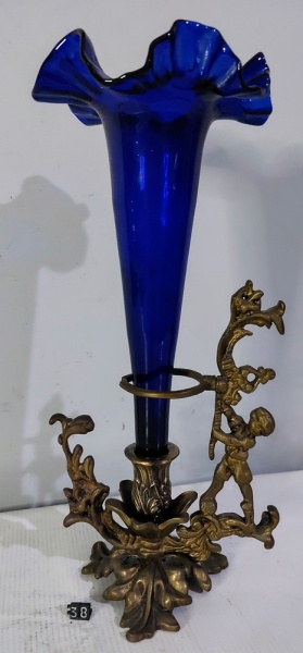 • Antiga e Rara Floreira em bronze e Tulipa Azul, medindo 34cm de altura.