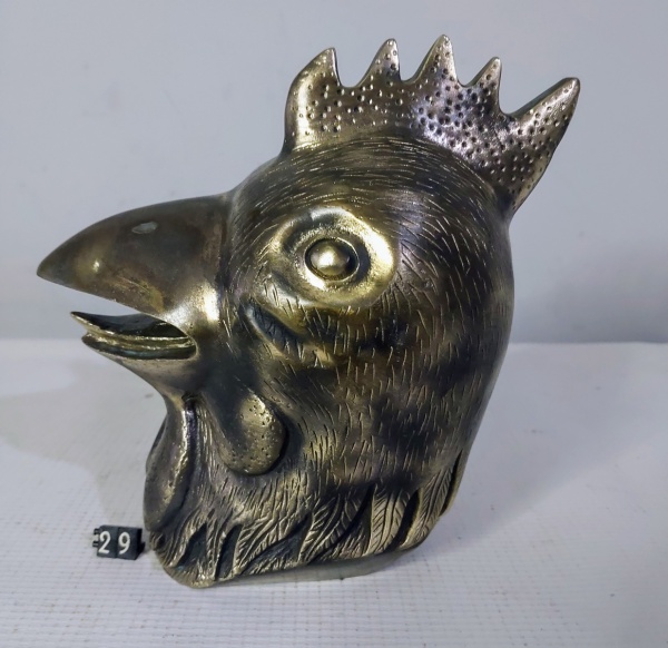 • ESCULTURA, um (1) escultura com caracteres orientais, representando CABEÇA DE GALO (um dos doze signos do horóscopo Chinês), confeccionado em bronze patinado, medindo 14 cm altura e pesando aproximadamente 1.370 gr.