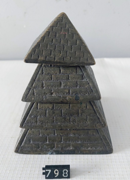 •  Belíssimo conjunto  de 4 enfeites de mesa em bronze representando pirâmides do Egito. Medindo a maior 8 cm de altura e 8 cm de largura.