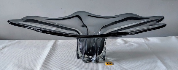 • Exuberante e belíssimo centro de mesa na cor cinza claro, formato diferenciado elaborado em vidro artístico, forjado e repuxado a partir de movimentos manuais e de sopro. Utilizando a técnica da criação de vidros artísticos estilo de Murano, medindo 65 cm de diâmetro aproximadamente a parte mais larga.