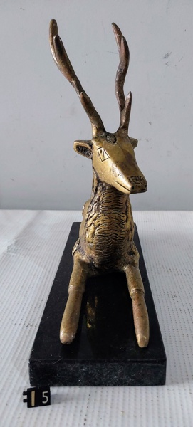 • Linda escultura de "CERVO" em bronze maciço, na posição de repouso com base em granito negro. Dimensões: 18 cm x 21 cm x 7 cm.