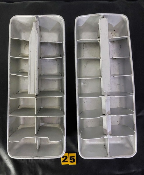 • Par de formas de gelo em alumínio com extrator. Medindo 28cm x 11,5cm.